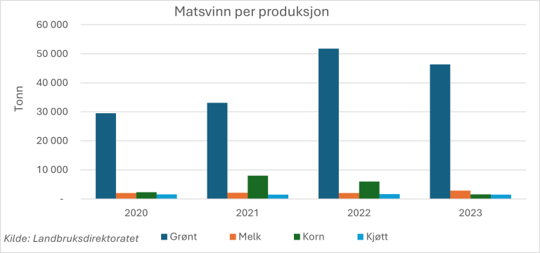 Landbruksdirektoratet presenterer fersk rapport om matsvinnet for jordbrukssektoren i 2023 som viser en nedgang på 15 prosent fra året før. –Det er viktig å være oppmerksom på at det kan være relativt store endringer for planteproduksjoner mellom år - både i mengde produsert og matsvinn - avhengig av vekstsesonger og værforhold, understreker seniorrådgiver Elin Røsnes i Landbruksdirektoratet. Jordbrukssektoren omfatter her bonde, pakkeri og industri.