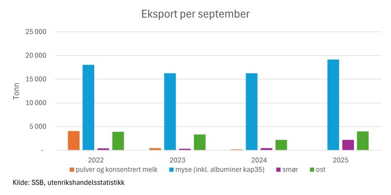 Per august var den totale eksporten av meieriprodukter på om lag 2000 tonn.