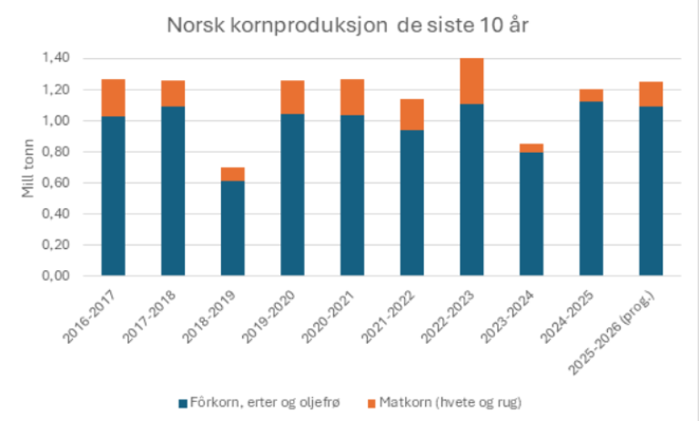Markedsregulator Felleskjøpet Agri utarbeider normalt tre faste prognoser per år. Prognosen i november var den første etter avsluttet innhøsting og gir en god indikasjon på tilgangen av korn i 2025/26-sesongen. Prognosene er grunnlaget for fastsettelse av størrelsen på importkvotene som Landbruksdirektoratet auksjonerer ut.
